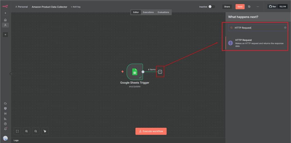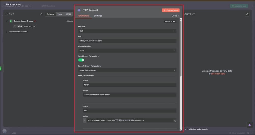 Alternatively, you can drag the ASIN from the previous Google Sheets node to dynamically build the URL.