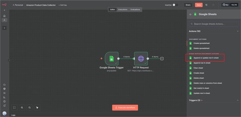 That’s it. The workflow will automatically start collecting fresh data whenever you add new ASINs and keep your sheet up to date, significantly reducing your manual work.