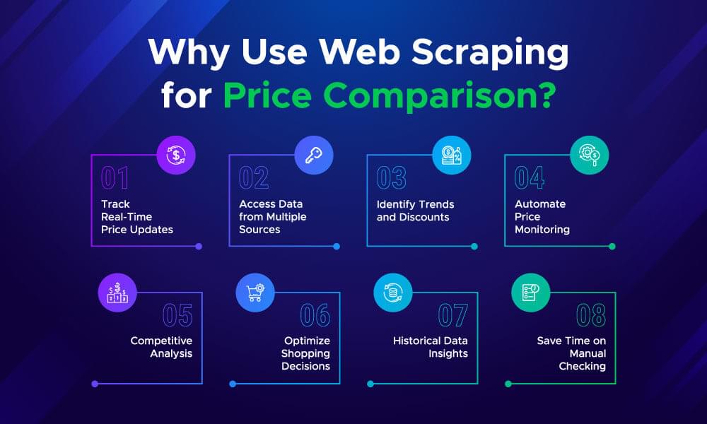 Web scraping is a way to automatically extract data from websites. For price comparison, it allows you to collect real-time pricing information from multiple online stores so you can find the best deals. By automating this process, you’ll save time and make better buying decisions.